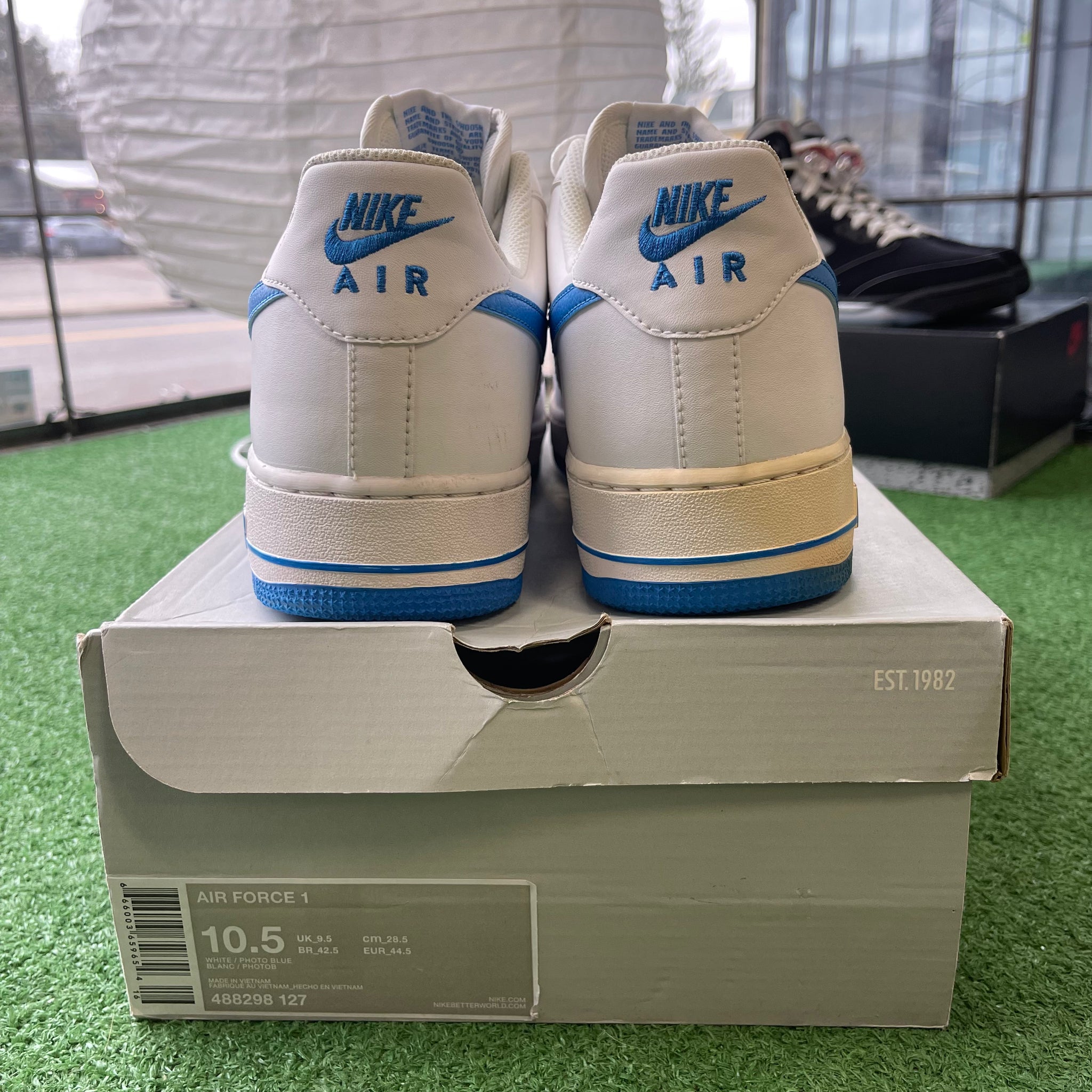 Nike White Blue Low Air Force 1s